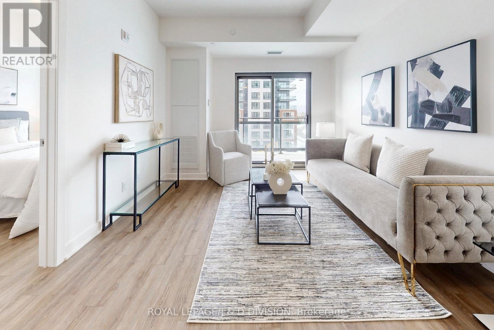 Welcome to this beautiful suite at MODO 55 Condos - This a stylish boutique residence in the heart of Bowmanville offers fantastic value! This 1 + den layout features over 700 sq ft of thoughtfully designed living space, complete with 2 full bathrooms and owned parking - a rare and highly desirable combination. Located in a nearly new, 12-storey building just one year old, this suite blends contemporary finishes with functional design.Step inside to a bright open-concept layout, perfect for entertaining or relaxing at home. The modern kitchen flows seamlessly into the living and dining areas, while large windows fill the space with natural light. The versatile den makes an ideal home office, guest space, or reading nook. Located steps to the future GO train station, and walking distance to grocery stores, restaurants, shops, and everyday amenities - with easy access to major highways for commuters. Fantastic value! (id:27)